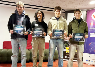 Tiphaine Chanclou, Nathanaël Péan et Louanne Gutierrez-Moreno sont les lauréats retenus. Leur affiche met l’accent sur l’identité locale du rendez-vous, en évoquant l’univers maritime de la presqu’île par une vague qui sort de l’écran d’un téléphone portable. Une jeune femme surfe sur la « vague » du numérique, sa glisse traduisant la volonté de présenter les facettes du numérique de façon ludique.